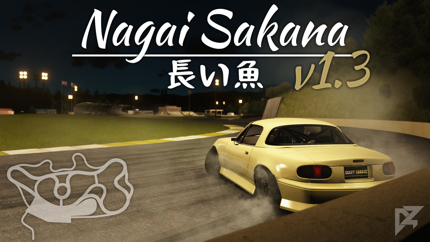 Focusing on a larger sized and greater number of starting pits, my third custom track for Assetto Corsa is now available to download!Nagai Sakana, meaning 'Long fish' in Japanese, is a fictional drift track circuit located somewhere unknown in Japan. Featuring higher quality models, improved foliage meshes, plus better textures and shaders, resulting in overall greater quality than previous projects.Features: